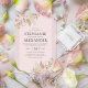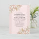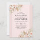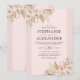 Élégantes invitations de mariage bohèmes avec feuilles de palmier séchées aquarellées, herbe de la Pampa, fleurs roses et modèle de mariage moderne.