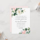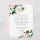 Faire-part de mariage floral classique à l'aquarelle pastel, encadré par un bouquet de fleurs peintes en rose vif, blanc et bleu poussiéreux. Les détails de votre mariage sont mis en surbrillance avec toutes les lettres noires.