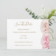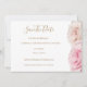 Un design élégant avec des roses de différentes nuances de rose sur fond blanc et une typographie en or.