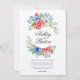 Faire-part de mariage floral rouge, blanc et bleu