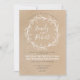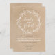 Cette faire-part de mariage rustique et chic présente une couronne florale blanche qui met en valeur le nom de la mariée et du marié sur un arrière - plan en papier de style kraft. Contactez-moi pour toute commande personnalisée ou aide.