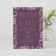 Faire-part de mariage violet avec de belles fleurs et feuilles rustiques. Parfait pour un mariage violet ou rustique. Remplacez le texte de remplacement dans le modèle pour ajouter vos informations. Pour plus d'options, telles que la modification de la police et de sa taille, cliquez sur le bouton "Personnaliser".