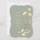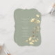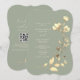 Cette invitation de mariage de forme unique présente un fond vert sauge doux avec des fleurs sauvages dorées peintes à la main et des accents botaniques. La calligraphie romantique et la mise en page inspirée du bohème la rendent parfaite pour les mariages rustiques, de jardin ou élégants en plein air.