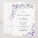 Invitez vos invités avec style grâce à ce faire-part de mariage floral aquarelle élégant, avec des fleurs délicates dans des tons vibrants de lilas, de violet et de lavande estivaux entrelacés de feuilles d'eucalyptus. Parfait pour un mariage en jardin, dans une grange rustique ou en plein air, ce charmant design floral capture la beauté de la nature tout en ajoutant une touche de romance intemporelle.