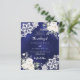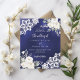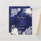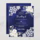 Pour une mariage élégante et romantique. Un bleu marine, un arrière - plan de couleur irrégulière décoré de fleurs blanches, de rose et de dentelle blanche. Personnalisez et ajoutez vos noms et détails. 1 feuille = 1 invite imprimé bord à bord.