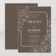 Faites une déclaration audacieuse et romantique avec cette faire-part de mariage florale foncée. Doté d'élégants contours de rose blanche sur un riche arrière - plan chocolat, ce design saisit le minimalisme moderne avec un charme intemporel.