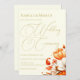 Ce faire-part de mariage sophistiqué capture la belle esthétique "Verona Sunset" de manière luxueuse et raffinée. L'arrière - plan classique en ivoire et l'élégant texte en or évoquent un sentiment de romantisme intemporel, tandis que les flores d'aquarelle vives en blanc et orange apportent une touche de modernité et d'art. Ce design est parfait pour les couples qui souhaitent séjourner en mariage classique ou classique dans une ambiance chaleureuse et romantique.