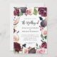 Faire-part de mariage florale rose, bordeaux et figuier. Aquarelle fleurie, feuillage et fruits peints à la main. Une partie d'une suite mariage. La couleur Arrière - plan peut être customisée.