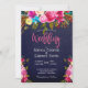 Aquarelle rose rond vive Florale | Faire-part de mariage de typographie. Bohème rose chaud, rose foncé, jaune, bleu clair, violet aquarelle peint roses, botanique arrangement floral design mariage avec feuilles verts et plumes sur plateau bleu marine. Doté d'une élégante typographie manuscrite, le nom de la mariée et du marié. Idéal pour les mariages du printemps et de l'été. #3338blue Si vous avez besoin d'aide ou d'articles correspondants, écrivez-moi.