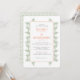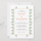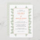 Ce faire-part de mariage présente des feuilles verts sauge qui regardent hors des bords d'une bordure de corail clair sur un arrière - plan blanc. Le dos est accentué d'un petit motif de feuilles vertes à la sauge. Ce design d'invitation est parfait pour un mariage extérieur plein de beauté naturelle.