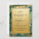 Le chic Green Marble Gold Parties scintillant Geode Faire-part de mariage dispose d'élégantes lignes de parties scintillant dorée avec émeraude vert geode abstrait marbre motif et script de calligraphie. Faire-part de mariage raffinée et élégante, parfaite pour les vacances.