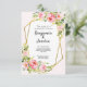 Présentant notre faire-part de mariage géométrique époustouflante, parfaite pour les couples modernes qui veulent ajouter une touche d'élégance et de romantisme à leur journée spéciale. Cette invitation présente un bel arrière - plan rose avec un centre blanc, créant une atmosphère douce et accueillante. Le centre est entouré de deux exquis hexagones d'or, ajoutant une touche moderne et sophistiquée à cette invitation. Les hexagones dorés sont ornés de fleurs roses délicates et romantiques et de verdure, créant un parfait équilibre entre élégance et modernité. Le design floral complexe est parfait pour les couples à la recherche d'un faire-part de mariage unique et mémorable. Les détails fleuris apportent une touche de romantisme et de féminité à ce design par ailleurs contemporain. Cette invitation conviendra parfaitement aux couples à la recherche d'une faire-part de mariage géométrique à la fois moderne et romantique. Les hexagones créent un design unique et moderne, parfait pour les couples qui veulent quelque chose de différent des invitations de mariage traditionnelles. Le mélange de rose, blanc et or ajoute une touche de glamour à l'invitation, ce qui en fait un lieu idéal pour les couples qui veulent ajouter un peu d'éclat à leur journée de mariage. Dans l'ensemble, cette faire-part de mariage est un choix parfait pour les couples qui souhaitent une touche de romantisme et d'élégance lors de leur journée spéciale. C'est également une excellente option pour ceux qui recherchent des invitations de mariage fleuries et géométriques avec une touche d'or. Avec ses détails floraux délicats, son design géométrique moderne et son étonnant mélange de couleurs, cette invitation vous impressionnera et donnera le ton de votre journée spéciale. Commandez dès maintenant vos invitations de mariage et laissez-nous vous aider à créer une expérience mariage mémorable et belle.