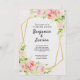 Présentant notre magnifique faire-part de mariage géométrique beige clair et or, parfait pour les couples modernes qui cherchent à ajouter une touche de romantisme et d'élégance à leur jour de mariage. L'invitation est faite par un subtil arrière - plan beige clair qui donne le ton d'une fête mariage élégante et sophistiquée. Le centre blanc est entouré de deux hexagones en or, finement conçus, qui ajoutent une touche luxueuse et moderne à l'invitation. Les hexagones sont ornés de fleurs roses romantiques et de verdure luxuriante, créant un design magnifique et délicat. Les détails fleuris apportent une touche de romantisme et de féminité à ce design par ailleurs contemporain, ce qui en fait un choix parfait pour les couples qui veulent quelque chose d'unique et mémorable pour leurs invitations de mariage. Cette invitation conviendra parfaitement aux couples à la recherche d'une faire-part de mariage géométrique à la fois moderne et romantique. Le mélange de beige clair, d'or et de rose délicat ajoute une touche de glamour et de sophistication à l'invitation, ce qui en fait un lieu idéal pour les couples qui veulent créer une expérience mariage chic et inoubliable pour eux-mêmes et leurs invités. Avec son design unique, ses couleurs délicates et ses détails luxueux, ce faire-part de mariage saura impressionner vos invités et donner le ton pour votre journée spéciale. Que vous soyez à la recherche d'invitations de mariage fleuries ou géométriques, cette invitation est un excellent choix pour les couples modernes qui veulent ajouter une touche de romantisme et d'élégance à leur jour de mariage. Commandez dès maintenant vos invitations de mariage et laissez-nous vous aider à créer une expérience mariage magnifique et inoubliable.
