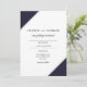 Faire-part de mariage géométrique simple et élégante avec texte en écriture simple et classique. Le texte centré dans les bordures diagonales de bleu marine et de gris. Pour réviser et modifier la disposition, cliquez sur Personnaliser, Modifier. Utilisez la commande Cntl. pour sélectionner et déplacer plusieurs sections à la fois.