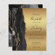 Le bord gauche de cette élégante faire-part de mariage moderne est orné d'une bordure en aquarelle noire ornée d'une parties scintillant en faux or. Le texte personnalisable combine écriture noire en ardoise, copperplate et polices italiques sur un arrière - plan de fausse feuille d'or. L'envers est assorti d'un design d'agate noir et or.
