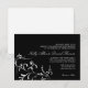 Faire-part de mariage noir simple avec design floral blanc, facilement personnalisable pour l'utilisation comme Save the Date ou Formal Invitation. *Note - Filigrane PS à l'envers, facilement amovible.