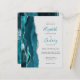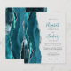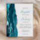 Le bord gauche de ce faire-part de mariage élégant et moderne présente une bordure d'agate aquarelle bleu sarcelle taillée avec une fausse brillance argentée. Le texte personnalisable combine une écriture manuscrite sarcelle avec des polices copperplate et italique gris charbon sur un fond gris pâle. Le verso présente un motif agate sarcelle et argenté assorti.