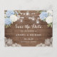 Faire-part de mariage Mariage Jar Mason Dentelle Bois Rustique. Carte de faire-part de mariage Guirlande en bois rustique. Carte de faire-part de mariage Fleurs Hydrangea Bleu et Blanc