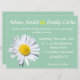 Ce faire-part de mariage est orné d'un arrière - plan verdoyant à la pruche qui est magnifique avec la marguerite simple qui, je pense toujours, est une grande touche de mariage floral car c'est simple, chic et il y a juste quelque chose de romantique dans l'humble marguerite qui évoque des idées de faire des chaînes de marguerite ensemble sans aucune autre inquiétude !
