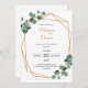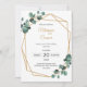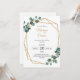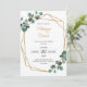 Ce faire-part de mariage verdoyant est doté d'un cadre hexagone doré branché et d'un élégant feuillage vert. Idéal pour les mariages modernes, boho ou extérieurs. Entièrement personnalisable pour correspondre à votre thème mariage naturel et géométrique.