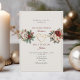 Célébrez votre amour avec ce faire-part de mariage hivernal romantique, mettant en vedette des florales rouges et ivoire festives, des accents de pin evergreen et un détail de cœur en corde dorée. Le fond ivoire chaud et la palette de couleurs saisonnières apportent un charme cosy et une élégance rustique—parfait pour une célébration inspirée de Noël.