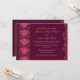 Elégant, orné et complexe henné tatouage motif de style ethnique indien faire-part de mariage. Les couleurs de l'invitation sont le raisin rose chaud (aubergine, fig, prune) et l'or. Couleurs audacieuses parfaites pour un mariage indien. Vous pouvez personnaliser tout le texte de ce faire-part de mariage. Pour modifier le texte, utilisez les options de personnalisation. Pour modifier la police, la taille de police, la couleur de police ou le placement du texte, choisissez customiser.