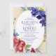 Aménagement floral aquarelle de fleurs bleues/violettes profondes complétées de fleurs rouges avec cadre ovale or. Dos violet profond avec fleurs rouges. Toutes les couleurs de type et d'arrière - plan sont personnalisables.