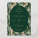 Cette élégante invitation de mariage présente un arrière-plan marbré sophistiqué dans des nuances de vert foncé, d'or et de crème, créant une atmosphère luxueuse. Le cadre ovale central met en valeur un texte personnalisable avec des polices serif classiques, soulignant les détails de l'événement tout en maintenant la symétrie et l'équilibre. Les accents dorés ajoutent une touche d'élégance, renforçant l'esthétique formelle et intemporelle parfaite pour célébrer une occasion joyeuse. Idéal pour ceux qui recherchent un design raffiné et somptueux pour marquer leur journée spéciale.