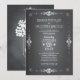 Le faire-part de mariage populaire de style tableau de bord est tracé par une bordure de défilement rapide et donne un effet de craie. Sur le dos, une illustration originale d'un pot de maçon branché contenant des fleurs d'hydrangée blanches et d'un coeur personnalisé avec les initiales de la mariée et du marié. La typographie Whimsical donne à l'invitation un aspect légèrement élégant. Des éléments de coordination sont également disponibles.