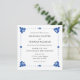 Ce faire-part de mariage mexicain de style talavera s'inspire du magnifique carrelage et de l'art populaire que l'on trouve au Mexique et dans tout le sud-ouest américain. La couleur bleue frappante et la typographie classique créent un look élégant, à la fois traditionnel et moderne. Vos invités mariages aimeront recevoir cet invitation mémorable.