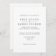 Ce faire-part de mariage minimal moderne présente une typographie épurée, un espace blanc généreux et un design intemporel noir et blanc. Entièrement personnalisable avec vos noms, date de mariage et détails du lieu, il est parfait pour les mariages élégants, classiques et contemporains et se coordonne magnifiquement avec une suite de papeterie de mariage assortie.