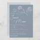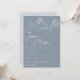 Élégant script minimaliste moderne bleu poussiéreux avec faire-part de mariage magnolia floral.