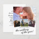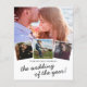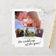 Élégantes invitations de mariage en papier photo avec un fond blanc stylé, 4 photos du couple heureux, un cœur d'amour et un modèle de mariage moderne facile à personnaliser.