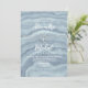 Simple, élégant, minimaliste boho moderne faire-part de mariage bleu poussiéreux avec coeur de corde argentée.