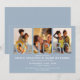 Cette élégante invitation de mariage chic bleu poussiéreux comprend vos 3 photos spéciales et votre date spéciale avec une typographie noire classique. Conçu par Thisisnotme©