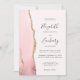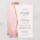 Le bord gauche de cette élégante faire-part de mariage moderne est orné d'une bordure en aquarelle rose vif et recouverte d'une parties scintillant en faux or. Le texte personnalisable combine écriture manuscrite, copperplate et polices italiques en gris fusain sur un arrière - plan blush pâle. L'envers est assorti d'un design d'agate en blush et or.