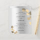 Un faire-part de mariage moderne, élégant et minimaliste. Fond métallisé argent faux décoré d'eucalyptus doré, brindilles. Personnalisez et ajoutez vos noms et détails de mariage. Lettres de couleur noire.