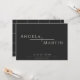 Ces invitations de mariage minimalistes modernes de 7" x 5" comportent des espaces réservés pour les prénoms du couple mariage, la date et l'heure, l'emplacement sur un arrière - plan noir avec texte en ivoire. Le dos est un arrière - plan noir avec un motif à ligne fine.