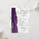 Le bord gauche de cette élégante faire-part de mariage moderne est orné d'une bordure d'aquarelle violette ornée d'une parties scintillant en faux or. Le texte personnalisable associe écriture manuscrite noire et dorée, polices cuivre et italique sur un arrière - plan gris et blanc en marbre. La motif en marbre gris et blanc est répétée au dos de la carte.