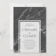 Ces élégantes invitations à un mariage ont un arrière - plan en marbre noir, gris et argent. Le texte apparaît dans une police simple et moderne en gris sans serif sur un rectangle blanc semi-transparent aligné sur le bas de la carte. Le design en marbre apparaît également au verso.