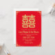 Célébrez votre journée spéciale avec cette élégante et chic faire-part de mariage chinoise. Avec un mélange intemporel de couleurs rouges et dorées traditionnelles, cette invitation impressionne vos invités. Le design complexe incorpore le symbole emblématique du double bonheur, symbole d'amour et de bonheur dans la culture chinoise. Cette touche moderne sur un design classique ajoutera une touche de sophistication à votre mariage. Idéal pour les couples à la recherche d'une fête d'inspiration asiatique à la fois élégante et mémorable.
