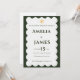Ce Faire-part de mariage moderne et verdoyant allie élégance contemporaine et ambiance boho rétro. Les vagues fluides et douces dans une palette verte apaisante créent une atmosphère tranquille mais élégante, idéale pour les couples qui apprécient les dessins inspirés de la nature avec une touche moderne. La combinaison d'éléments tendance et d'une atmosphère boho vintage fait de cette invitation un choix unique pour votre journée de mariage, offrant une esthétique chic et détendue. Idéal pour les couples à la recherche d'une façon mémorable et branchée d'invitation leurs proches à une célébration remplie d'amour, de chaleur et de charme moderne.