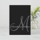 Élégant Faire-part de mariage moderne avec Monogramme. Un design simple utilisant le arrière - plan noir massif et la forme audacieuse et élégante de l'initiale surdimensionnée du nom de famille comme élément de design avec les prénoms de la mariée et du marié. Sur le dos de la carte, une simple couleur blanche arrière - plan avec un monogramme gris clair et une police noire élégante pour le texte de l'invitation complètent le faire-part de mariage élégant et simple.Entièrement personnalisable.Conception par Elke Clarke ©2008. Customisez avec votre monogramme, vos noms et vos couleurs mariages. Ajoutez toutes vos informations mariages à l'arrière de la carte en utilisant les invites de menu faciles à utiliser de Zazzle ou sélectionnez "customiser" pour plus d'options d'édition.. Vient avec une enveloppe blanche vierge. Pour les accessoires correspondants, voir les liens ci-dessous.