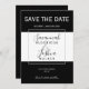 Faire-part de mariage moderne noir, blanc et gris, idéal pour les mariages de printemps, d'été, d'automne ou d'hiver. Ces invitations save-the-date présentent un design moderne en blocs noir et blanc avec un cadre gris. Personnalisez la carte avec les noms de la future mariée et du futur marié en typographie script élégante. Les couleurs incluent le noir, le blanc et le gris. Veuillez vous référer à la photo pour une référence de couleur.