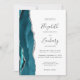Le bord gauche de cette élégante faire-part de mariage moderne comporte une bordure turquoise en aquarelle ornée d'une parties scintillant en faux argent. Le texte personnalisable combine écriture manuscrite, copperplate et polices italiques en gris fusain sur un arrière - plan blanc. L'envers présente un design turquoise et argenté assorti.