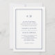 Élégant, simple et formel, notre faire-part de mariage monogramme intemporel est doté d'une bordure géométrique bleu marine encadrant vos détails mariages en lettres classiques, surmonté de vos initiales, monogrammes ou duogrammes. Les modèles de texte dans cette version sont définis avec le libellé pour les deux ensembles de parents accueillant.