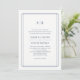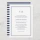 Élégant, simple et formel, notre faire-part de mariage monogramme intemporel est doté d'une bordure géométrique bleu marine encadrant vos détails mariages en lettres classiques, surmonté de vos initiales, monogrammes ou duogrammes. Les cartes sont retournées à la marine et à bandes blanches. Les modèles de texte dans cette version sont mis en place avec le texte pour les parents de la mariée hébergés, avec les parents du marié listés sous son nom.