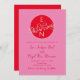 Moderne, minimaliste, simple, contemporain rouge vif et rose faire-part de mariage avec des inséparables de couple monogramme dessinés à la main, RSVP et QR code à l'arrière.