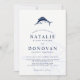 Invitations de mariage de style nautique personnalisées avec un jeu de couleurs bleu marine foncé et blanc. L'avant de l'invitation présente une illustration en marlin suivie de l'information sur le jour de votre mariage. Faded in the arrière - plan est un rose vent Compass Dans un style nautique vintage. À l'envers de l'invitation se trouve un motif à rayures blanches et marine foncé qui vient compléter l'aspect et le toucher. N'hésitez pas à modifier les détails comme les couleurs arrière - plans, la taille de police, les couleurs de police, etc. en utilisant la fonction de personnalisation. Vous pouvez également expérimenter avec les nombreux types de papier plus épais et les découpes disponibles. Amusez-vous à être créatif et à en faire votre propre.