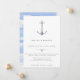 Magnifique accent de noeud de corde en forme de coeur et d'ancre aquarelle avec fond de lavis aquarelle bleu, faire-part de mariage sur le thème nautique.